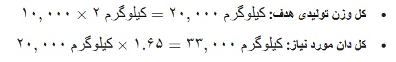 • محاسبه کل دان مورد نیاز گله: